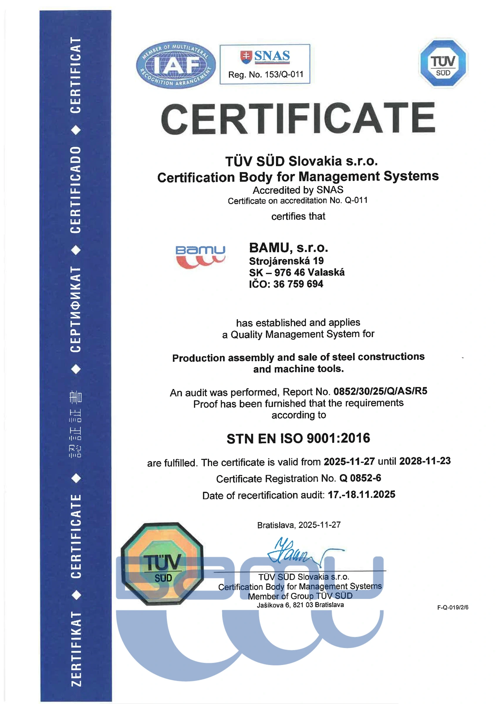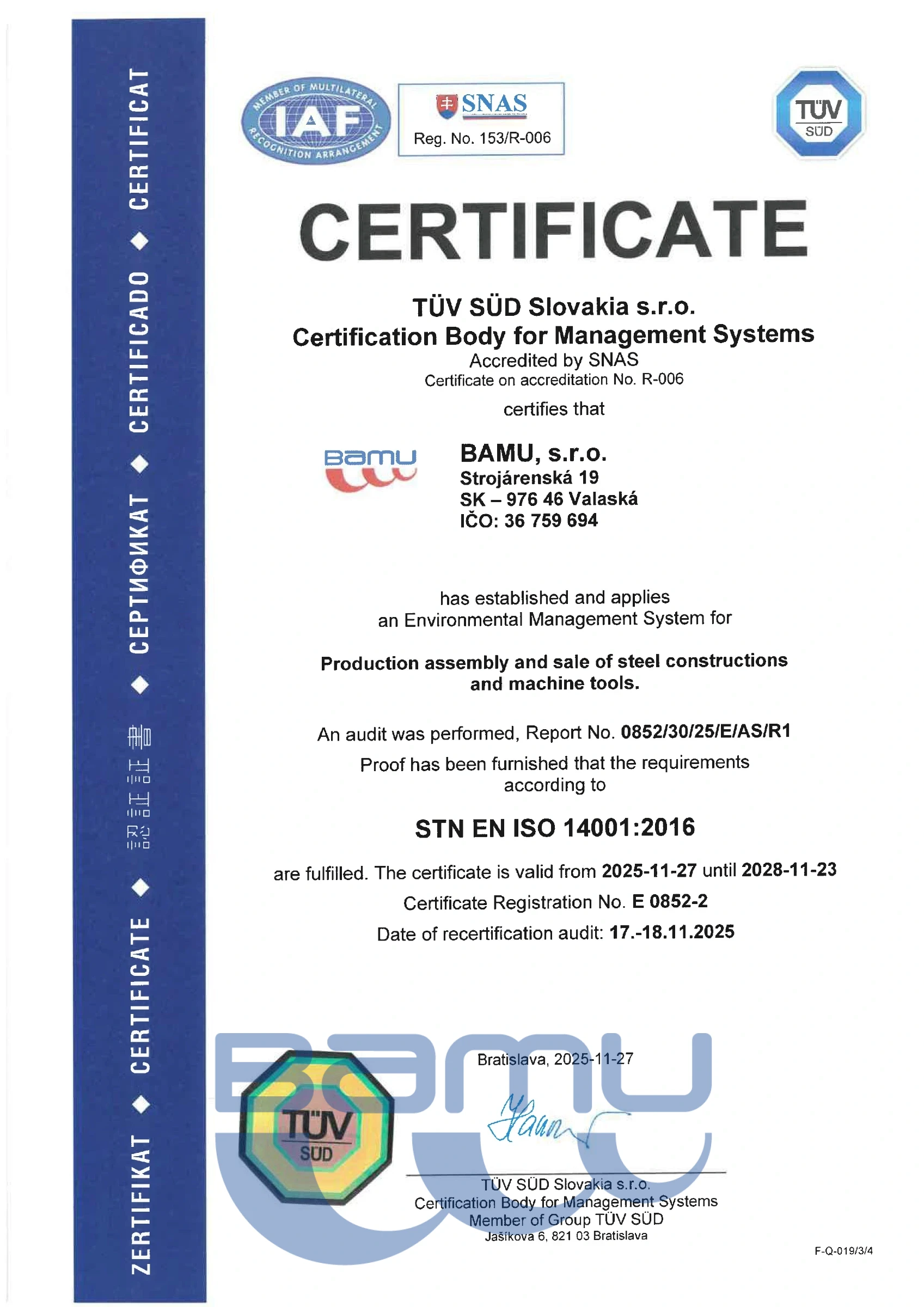 UNI EN 1090-1 + A1 CERTIFICATION